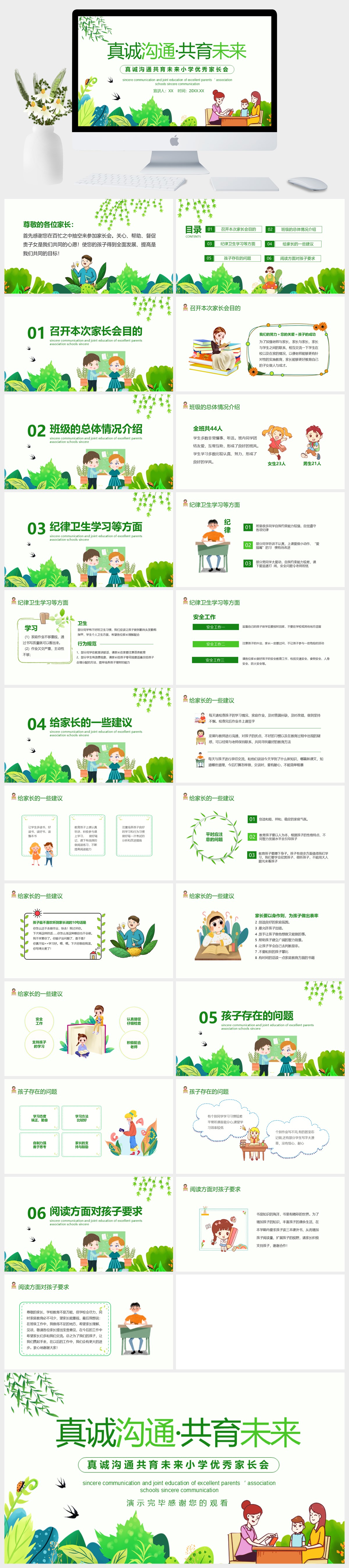 真诚沟通共育未来小学优秀家长会PPT模板