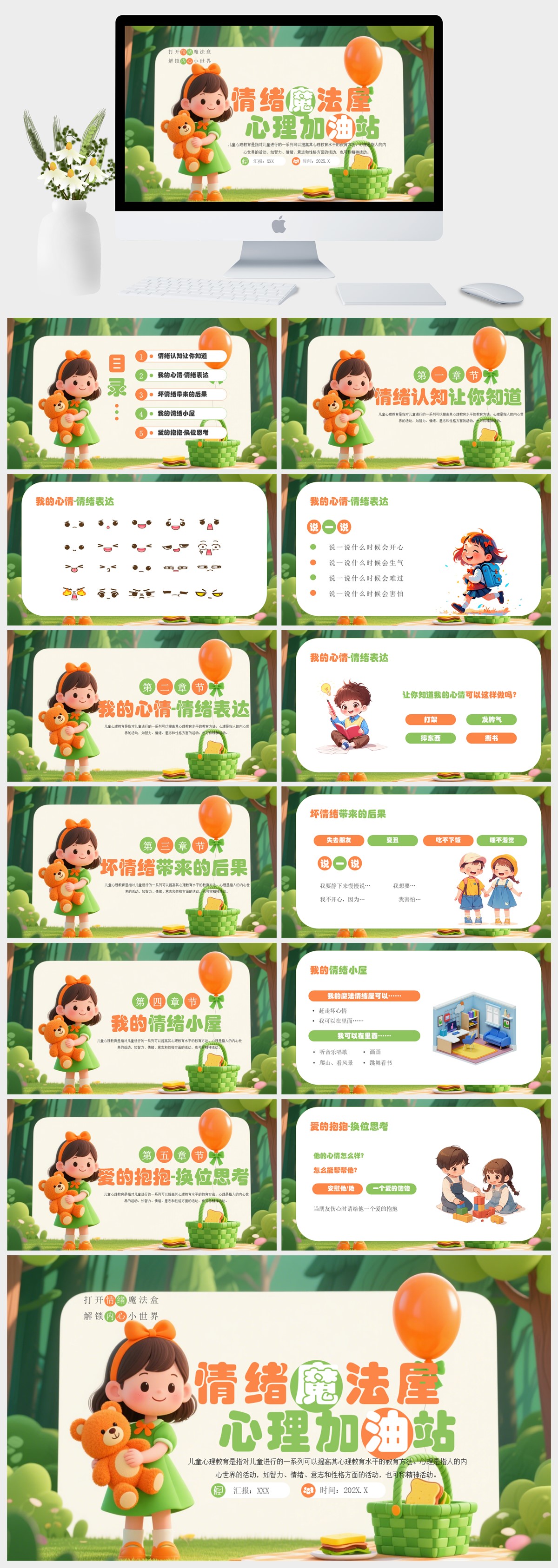 绿色卡通风心理健康情绪管理主题班会PPT模板