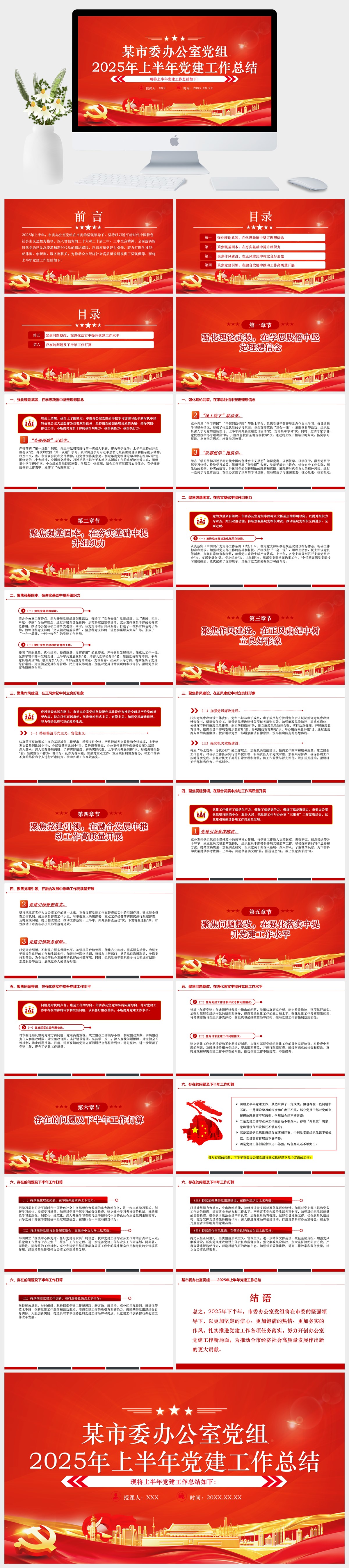 首页 PPT模板 工作总结 党政风某市委办公室党组2025年上半年党建工作总结PPT模板