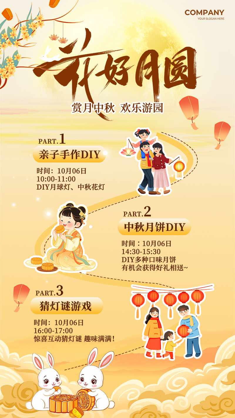 首页 PSD模板 节日海报 黄色中式质感风2025花好月圆中秋节游园会活动海报