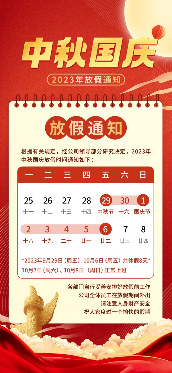 中秋国庆放假通知手机海报