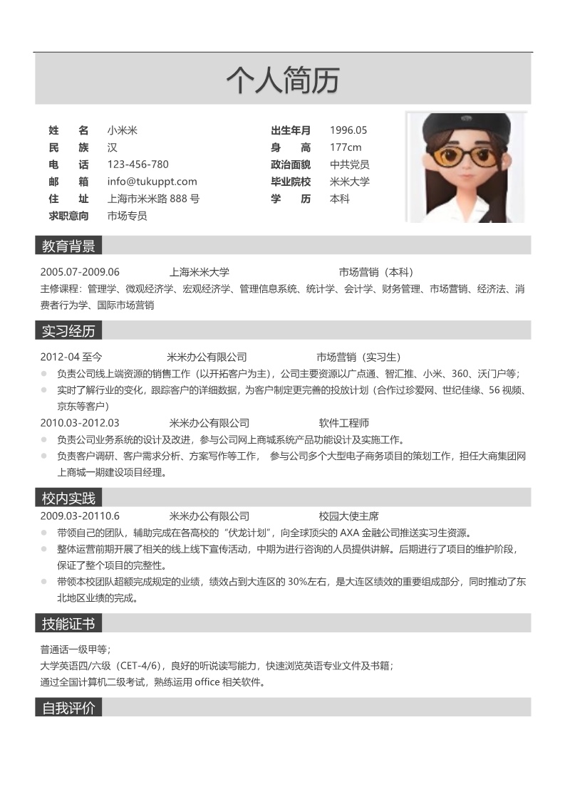 首页 Word模板 个人简历 灰色简约商务风市场专员求职简历word简历模板