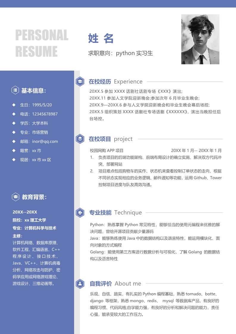 首页 Word模板 个人简历 职业简约风格商务个人简历模板