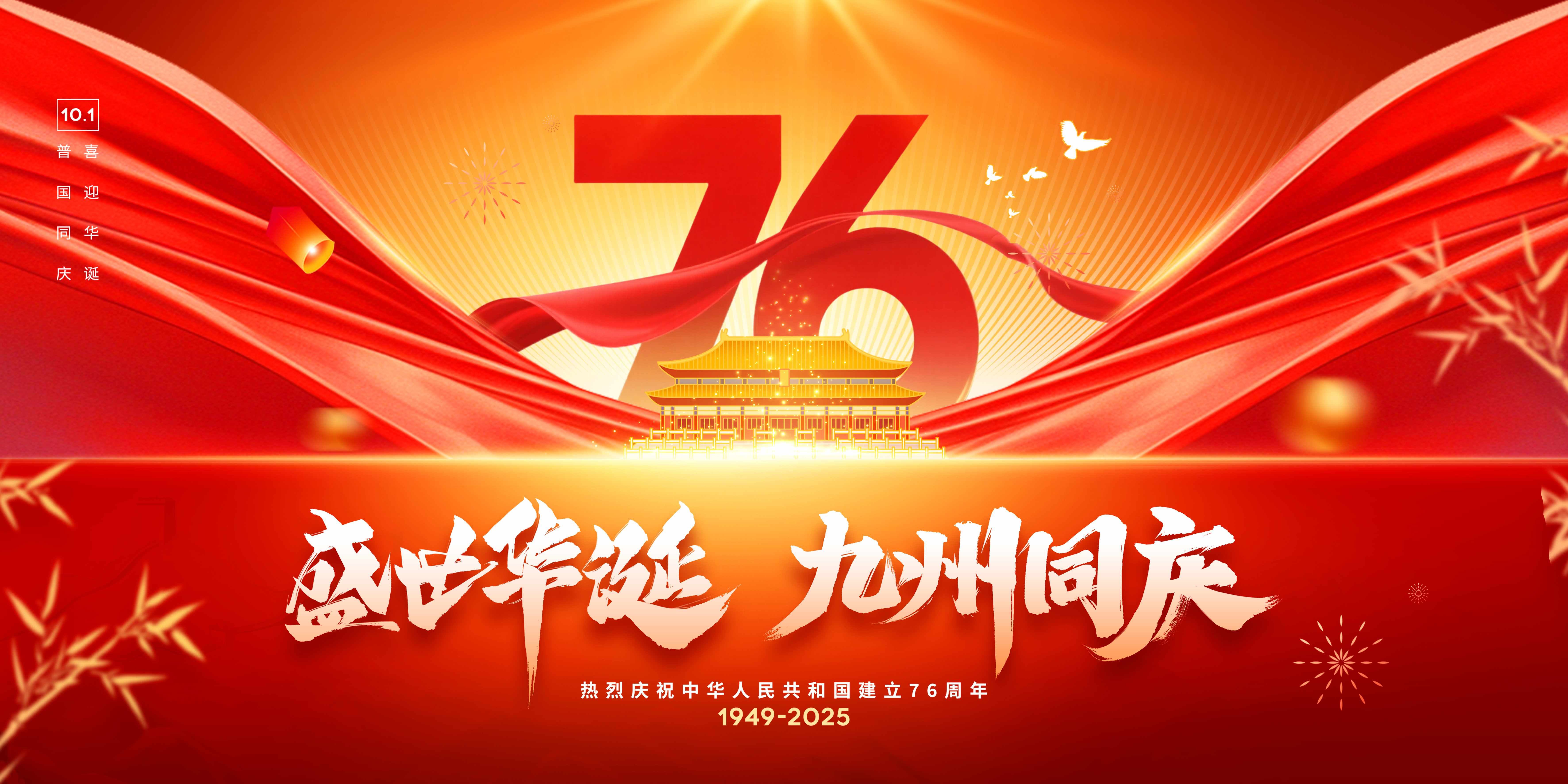 红色2025盛世华诞九州同庆76周年国庆节展板舞台背景