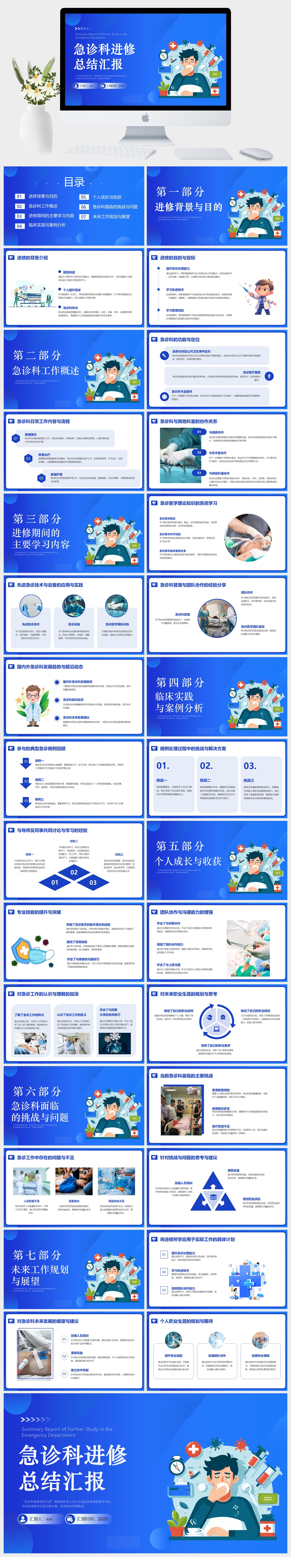 蓝色医疗急诊科进修总结汇报PPT模板