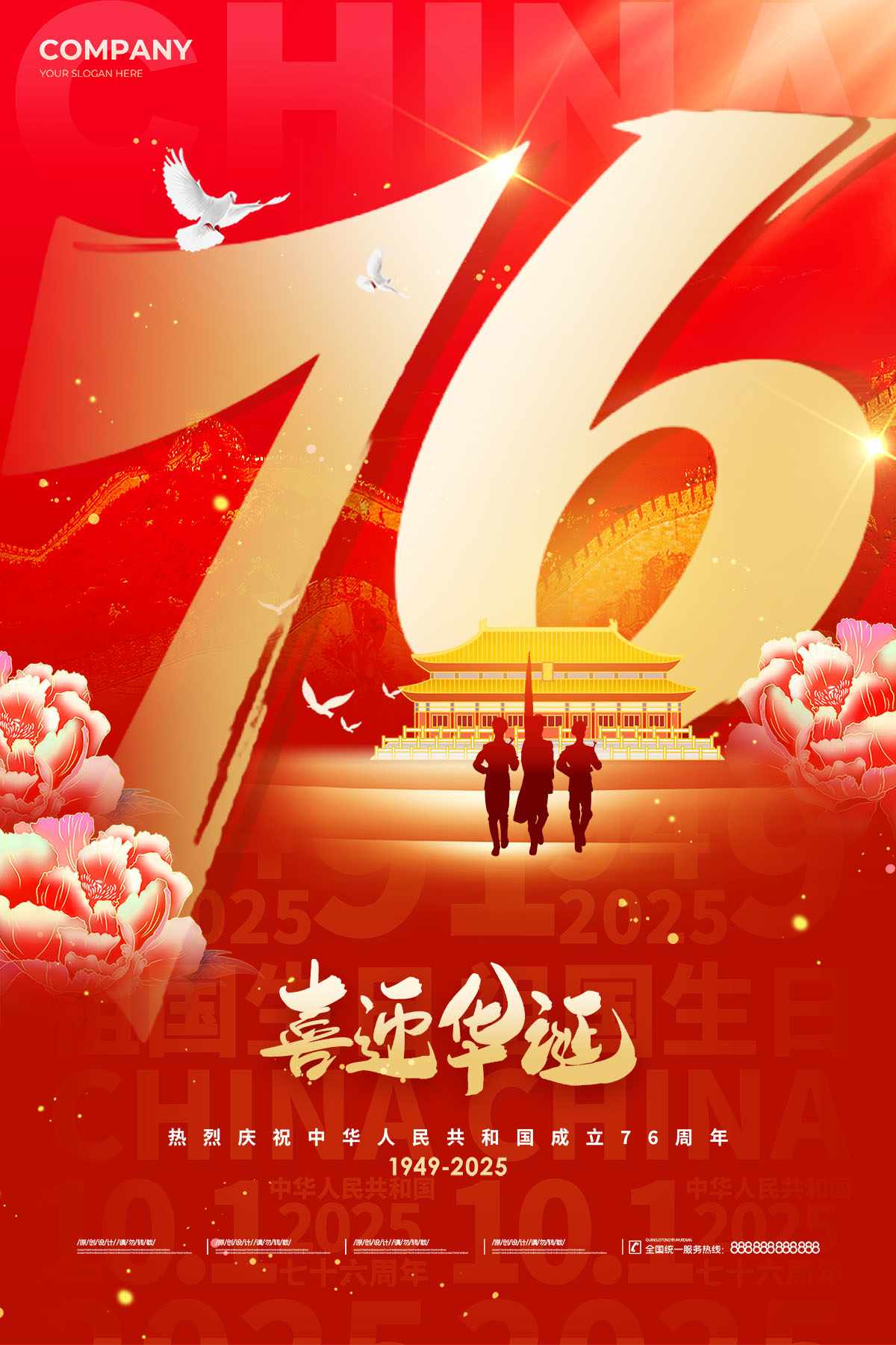 首页 PSD模板 节日海报 红色数字创意风格2025喜迎华诞国庆节76周年宣传海报