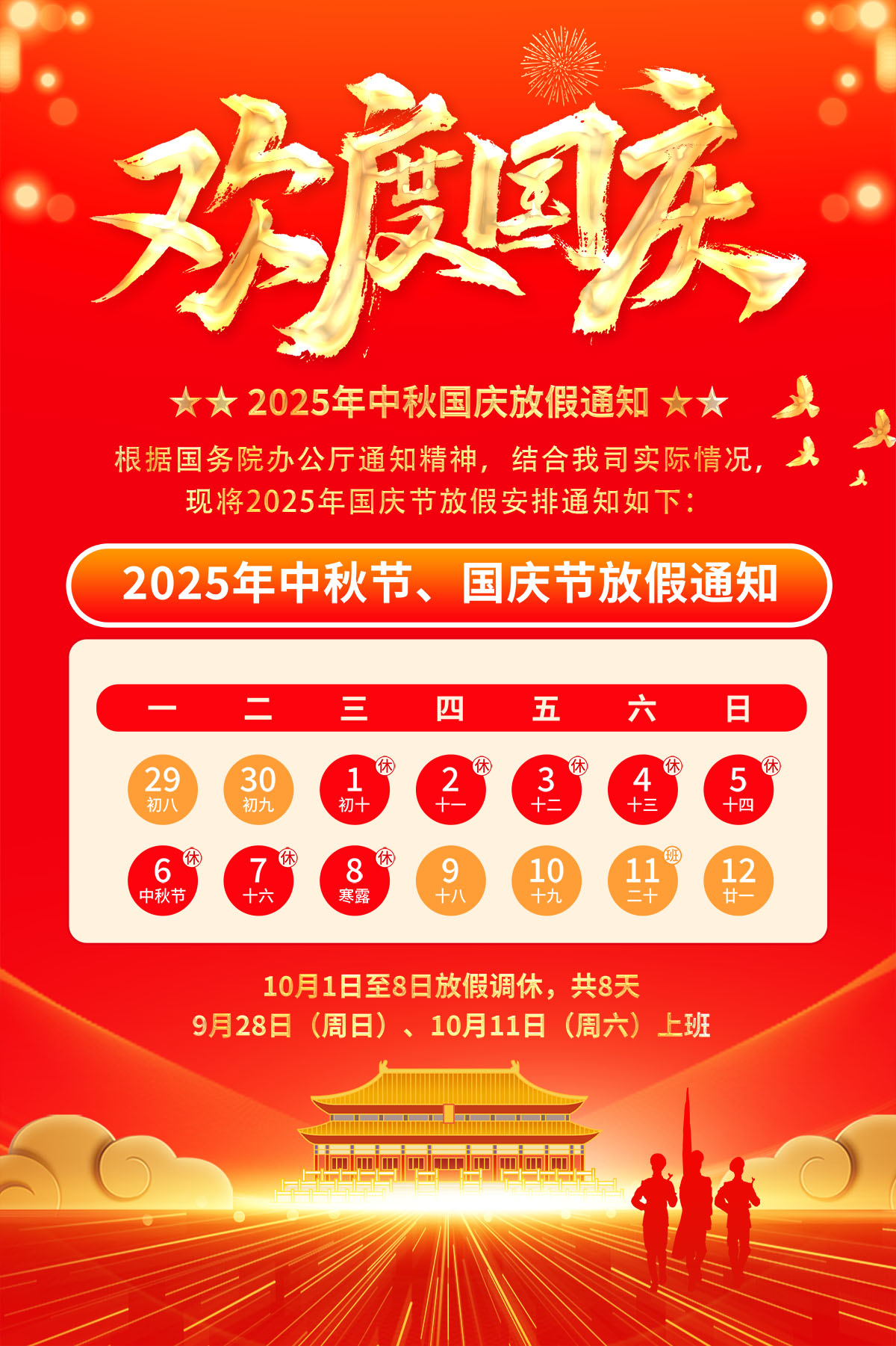 首页 PSD模板 节日海报 红金风格2025中秋国庆节放假通知76周年海报