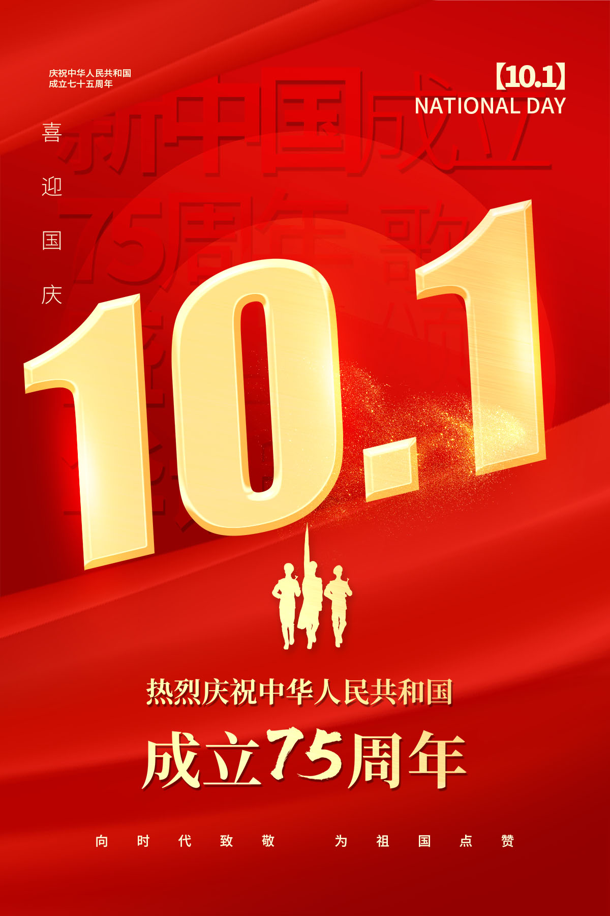 首页 PSD模板 节日海报 红色十一国庆节75周年红色简约海报