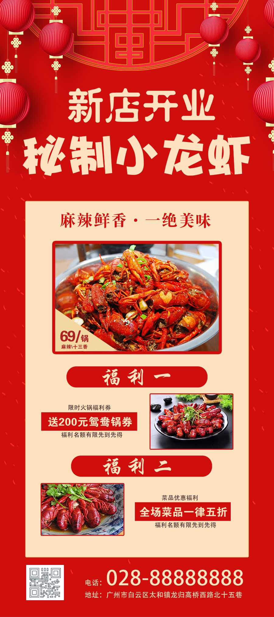红色大气新店开业秘制小龙虾美食促销宣传易拉宝展架行业