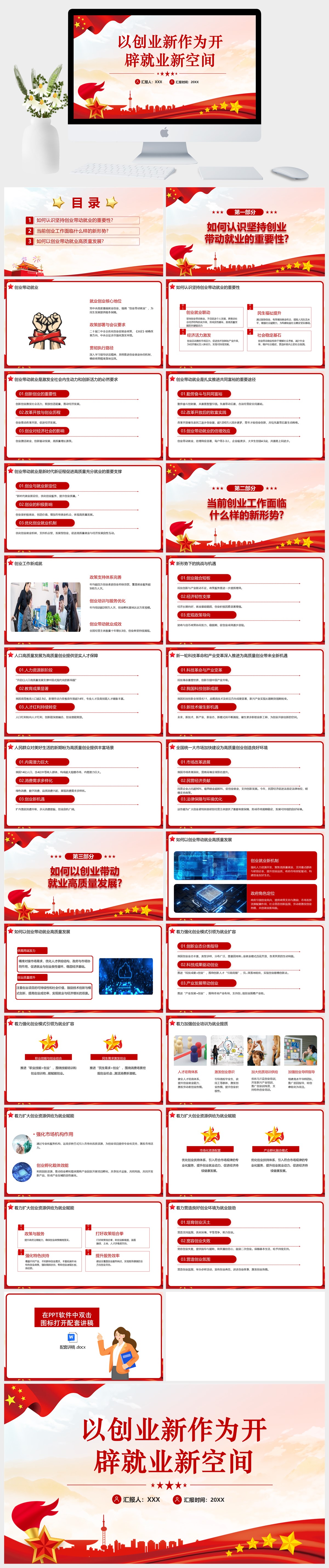 首页 PPT模板 商业计划 红色党政风以创业新作为开辟就业新空间党课PPT模板