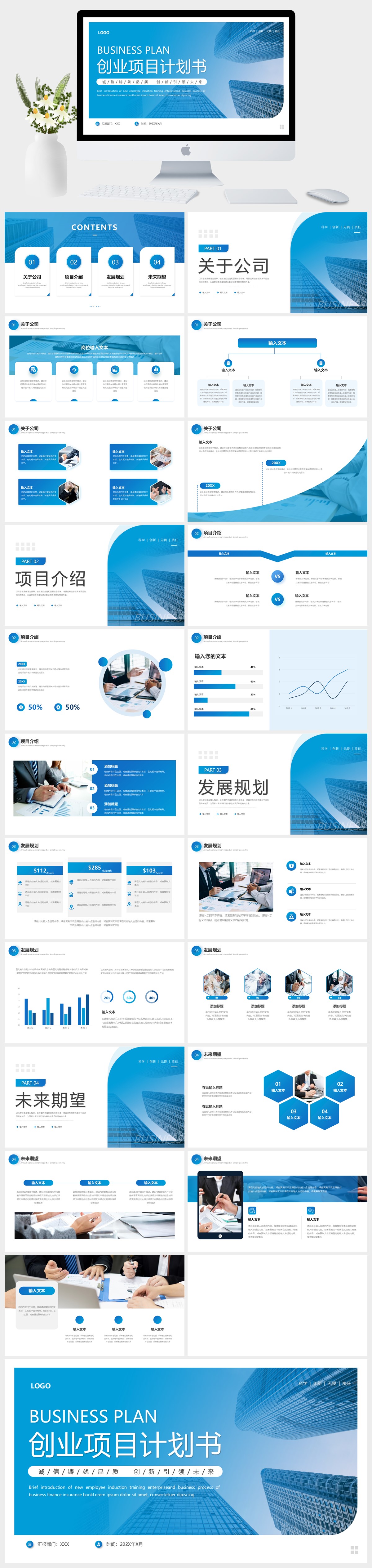 蓝色创业项目计划书PPT模板