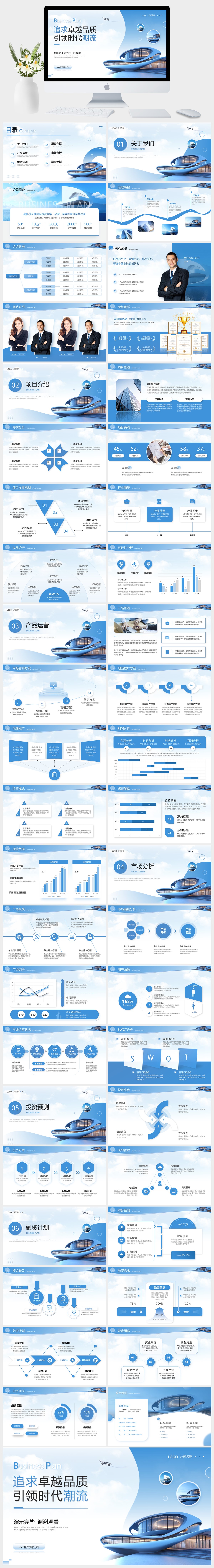 简约蓝色风创业商业计划书PPT模板