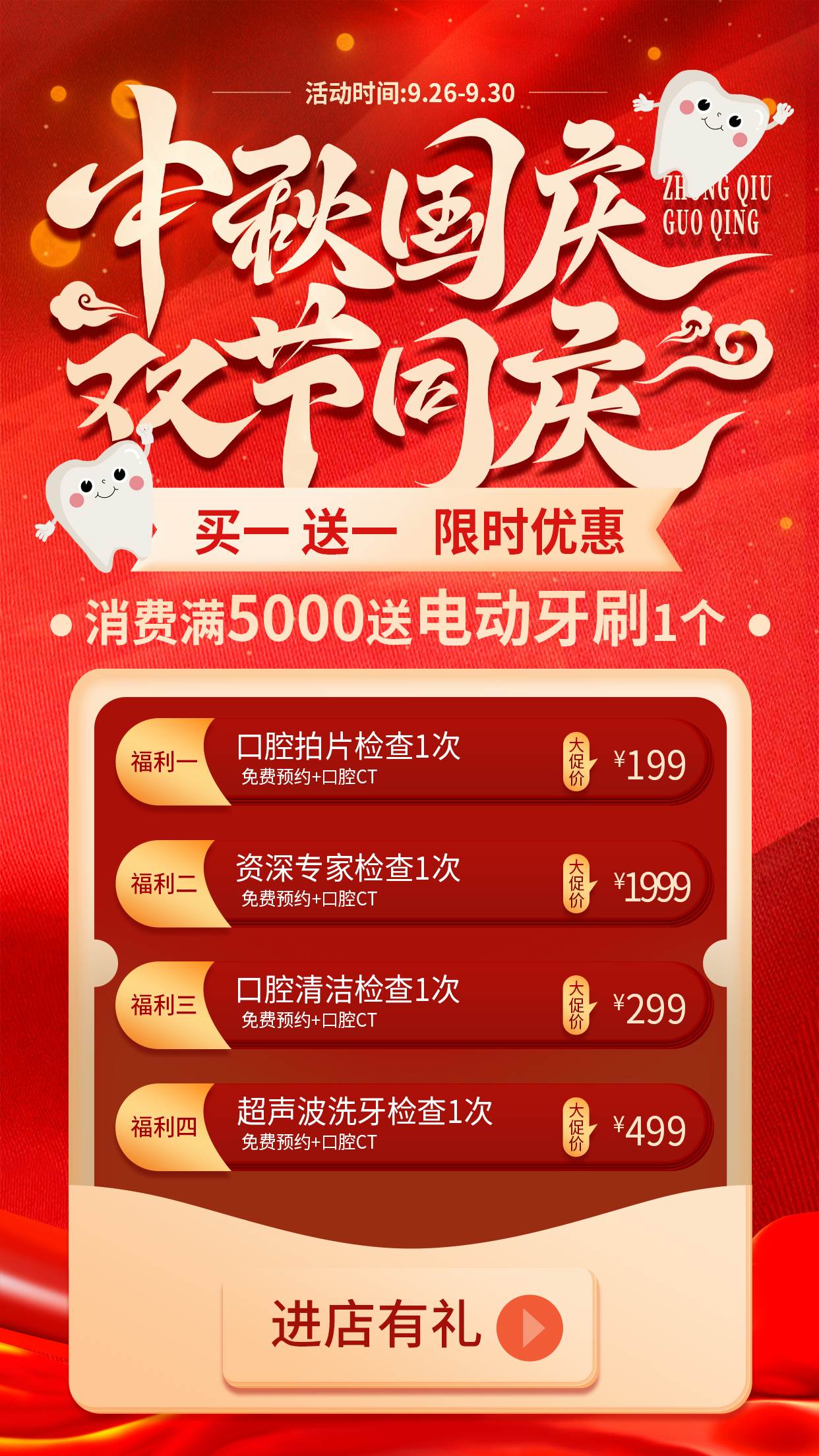 红色喜庆中秋国庆双节同庆口腔医院手机促销海报