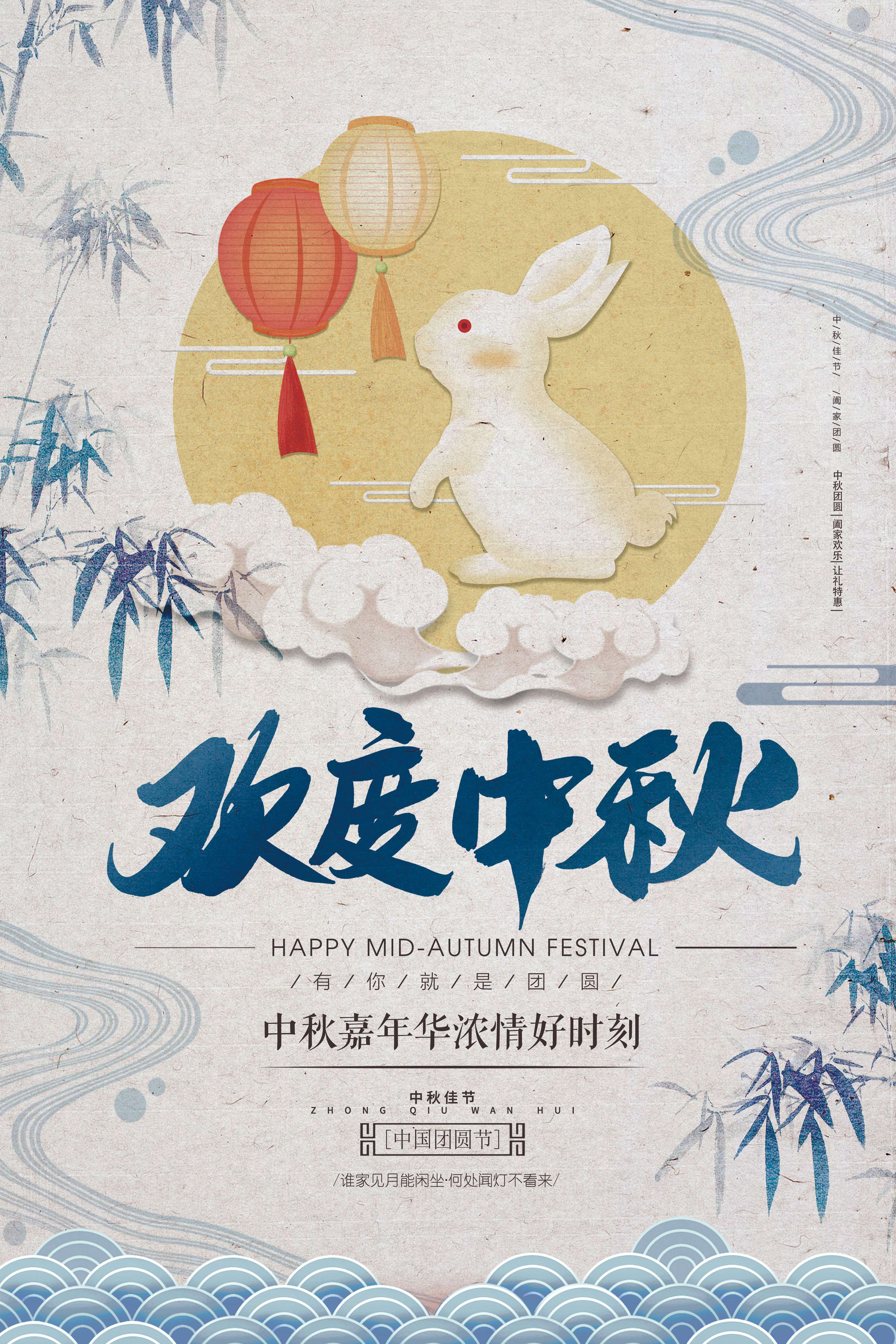极简中国风欢度中秋节日海报