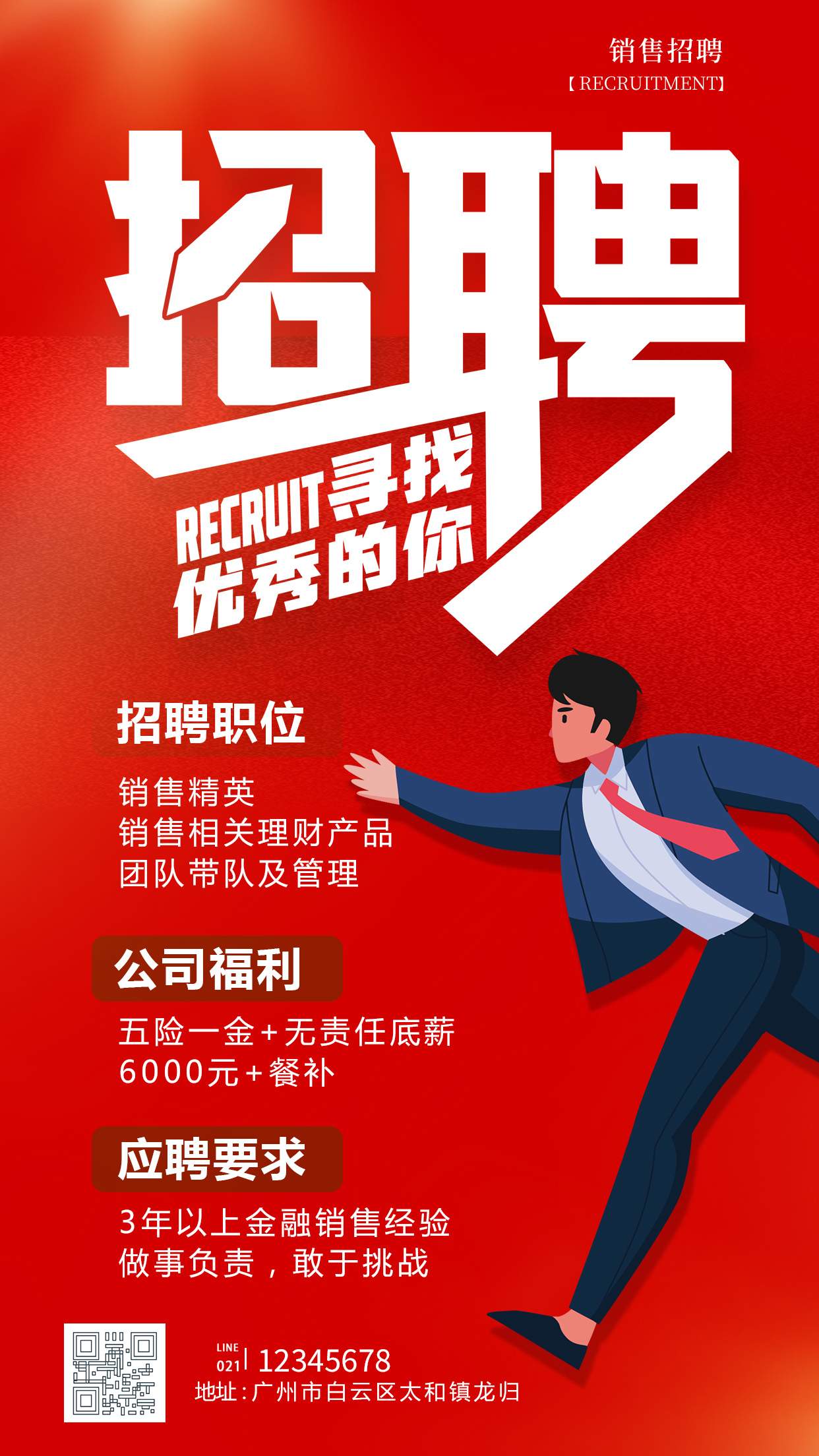 首页 PSD模板 展架广告 卡通红色风格招聘销售招聘手机宣传海报