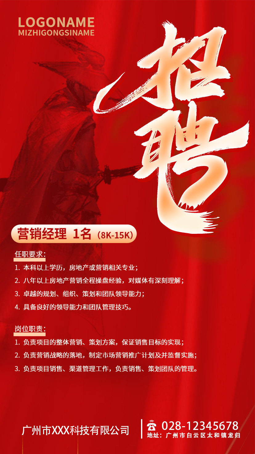 红色招募招聘创意手机文案海报招聘手机宣传海报