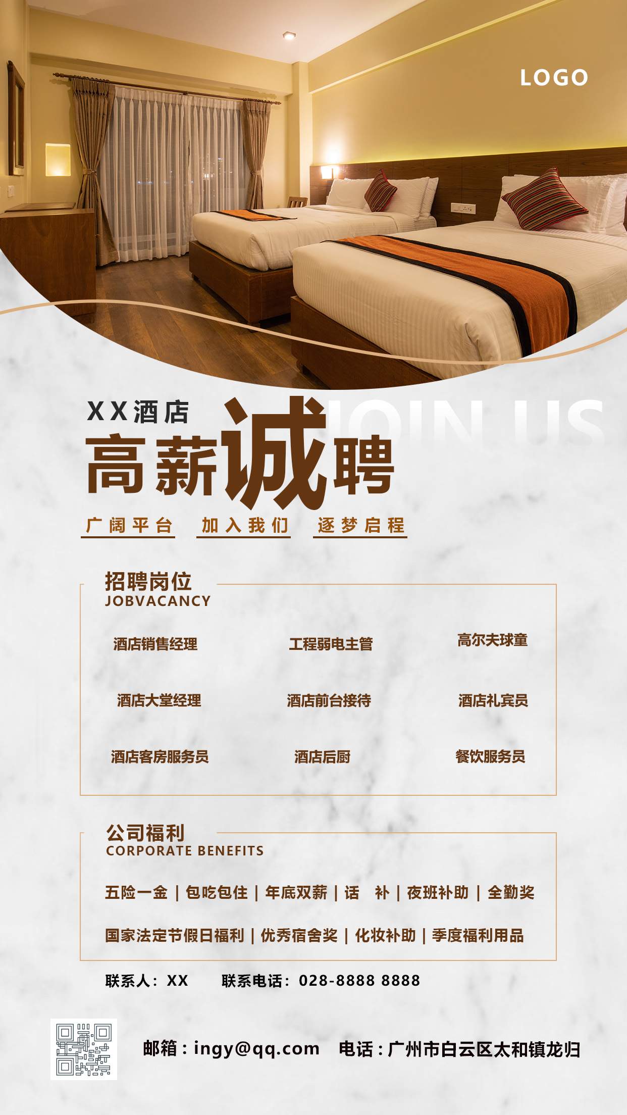 首页 PSD模板 展架广告 大气质感酒店招聘招人手机宣传海报