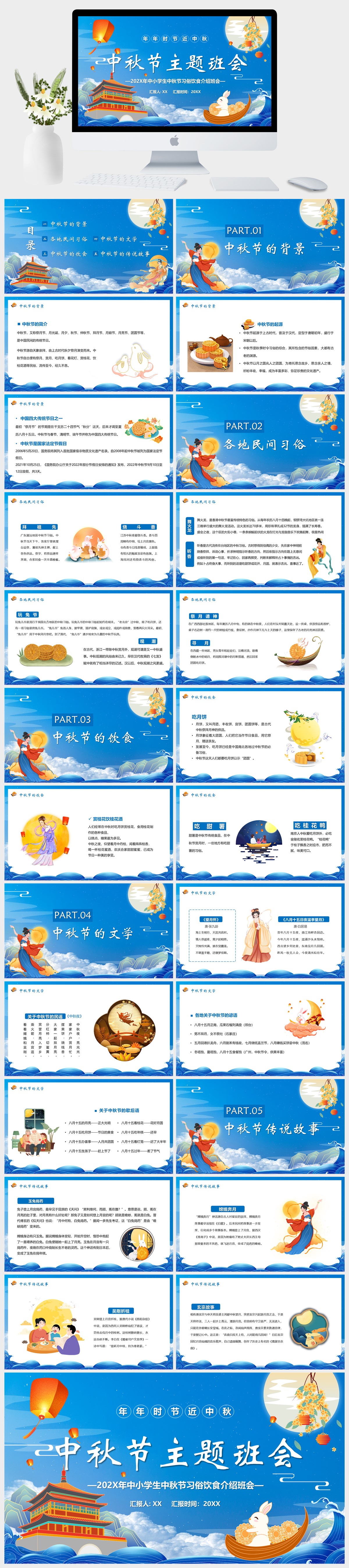 中小学生中秋节习俗饮食介绍班会PPT模板