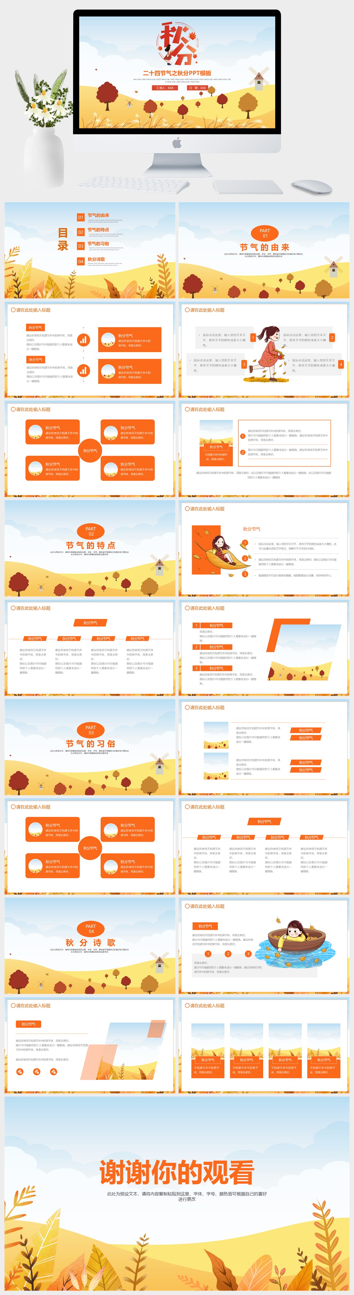 二十四节气之秋分PPT模板