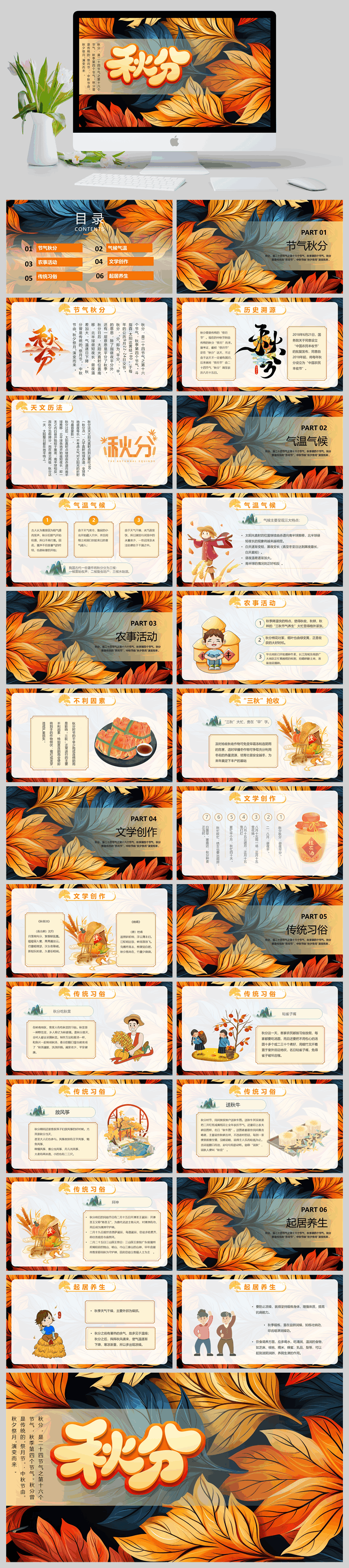 文艺小清新创意秋分节气介绍PPT模板