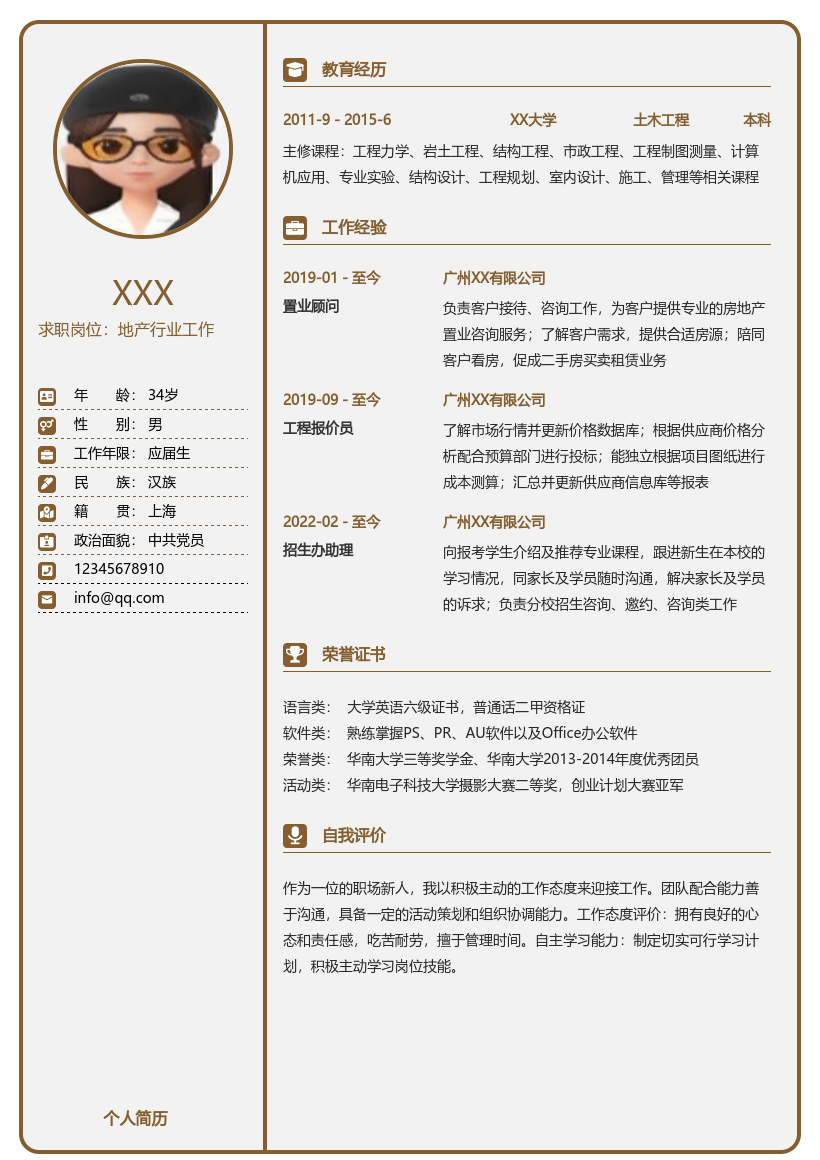 首页 Word模板 个人简历 极简风地产行业工作求职简历个人简历简历word简历