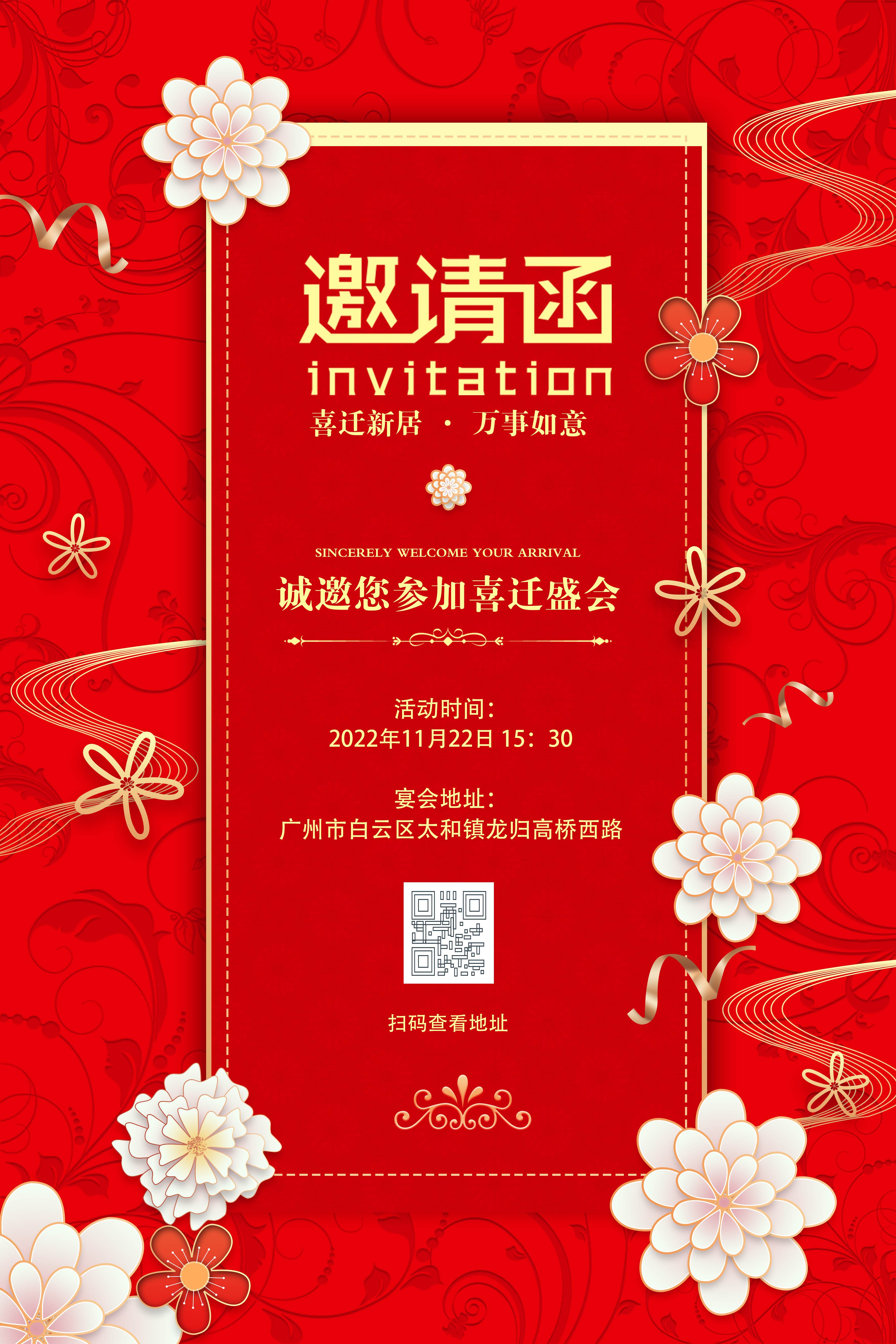 红色喜庆大气乔迁邀请函乔迁之喜邀请函海报设计