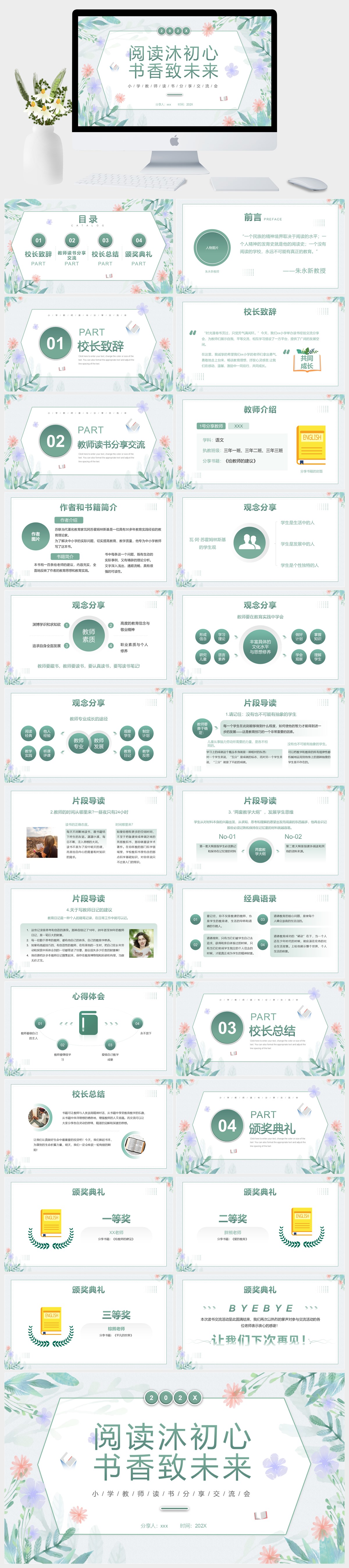 小清新小学教师读书分享交流会PPT模板