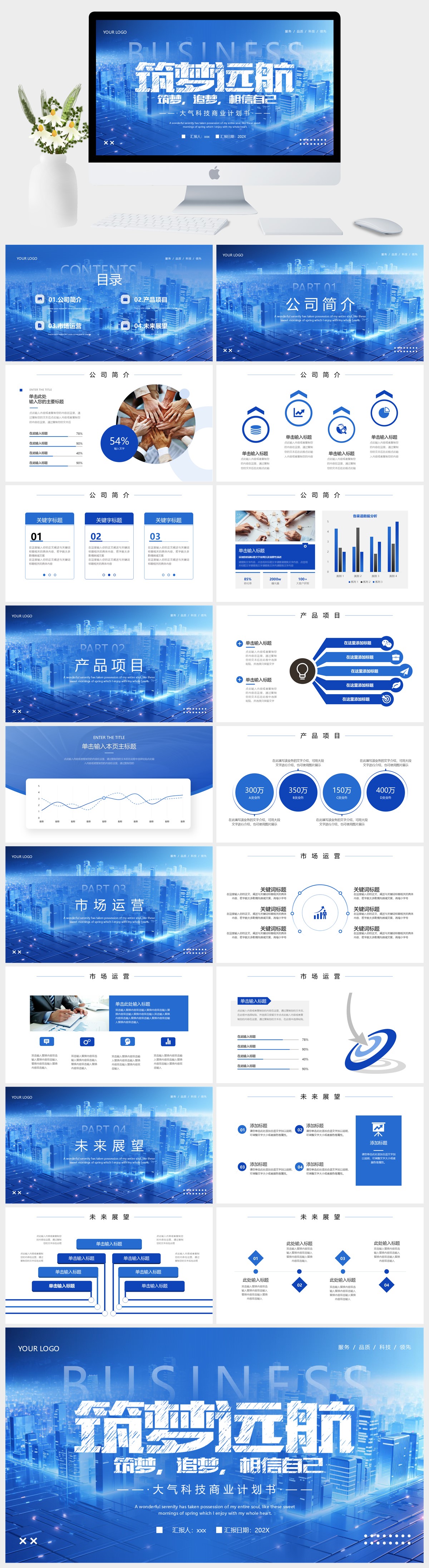 蓝色科技商务风发布会年终总结项目营销活动策划产品介绍通用PPT模 板