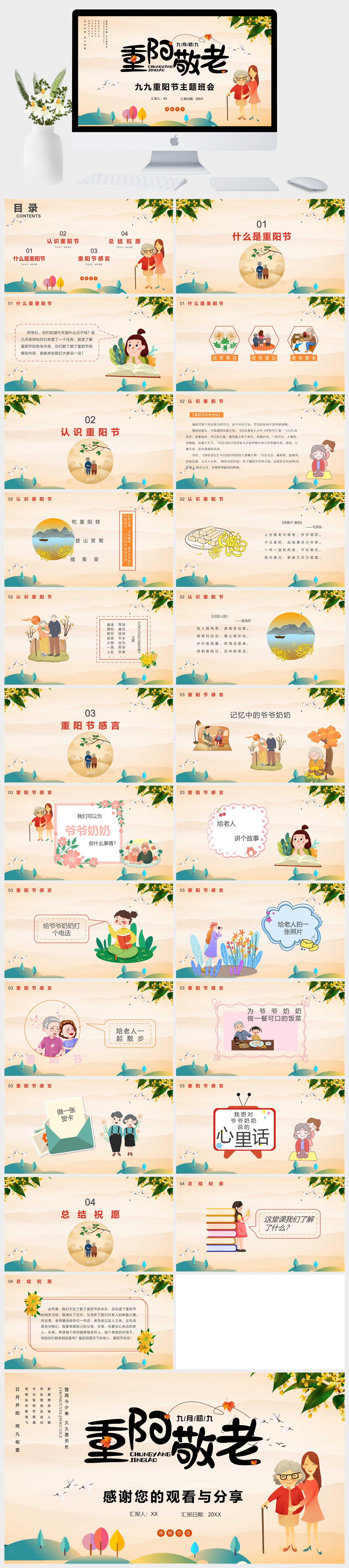 九九重阳节主题班会PPT模板