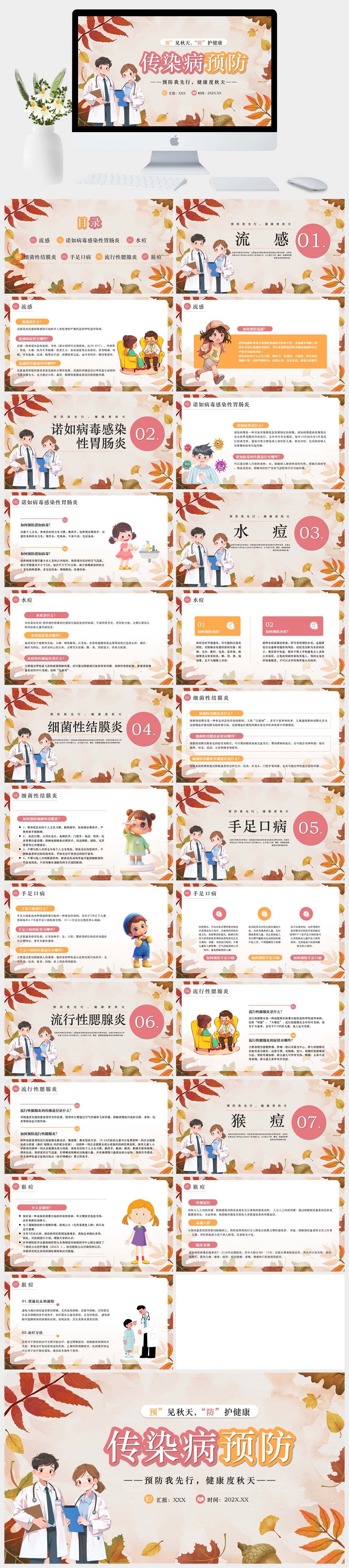 黄色手绘插画风秋季预防传染病PPT模板