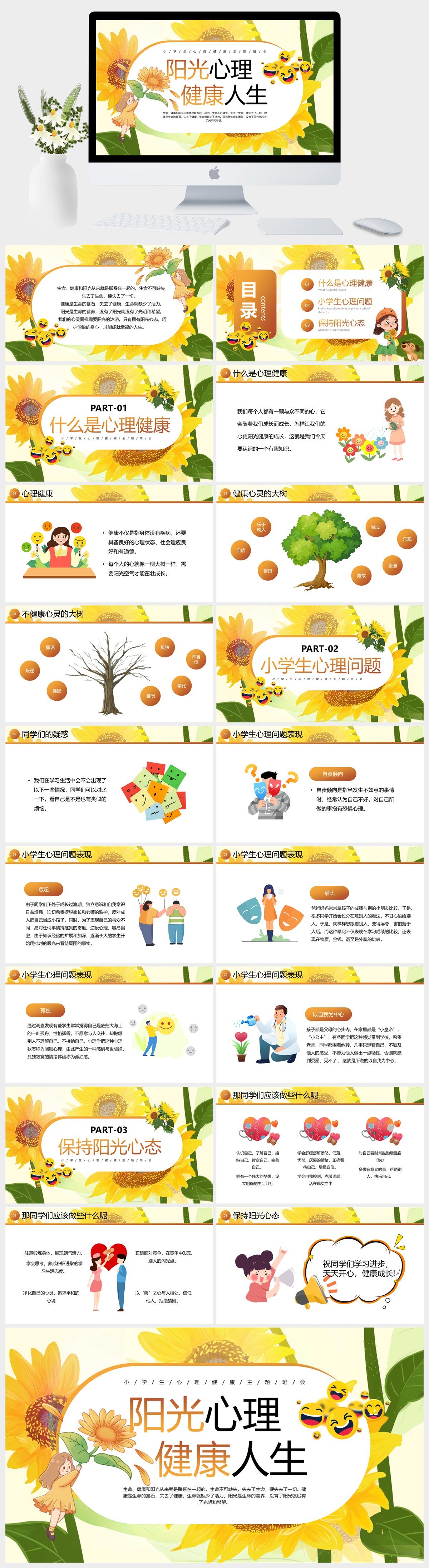 阳光心理健康人生心理健康主题班会PPT模板