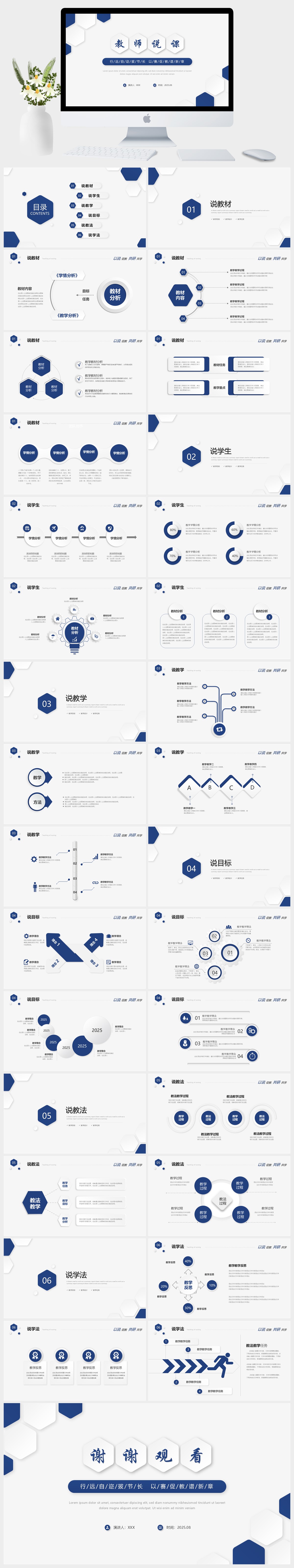 蓝色简约风教师说课PPT模板 (2)