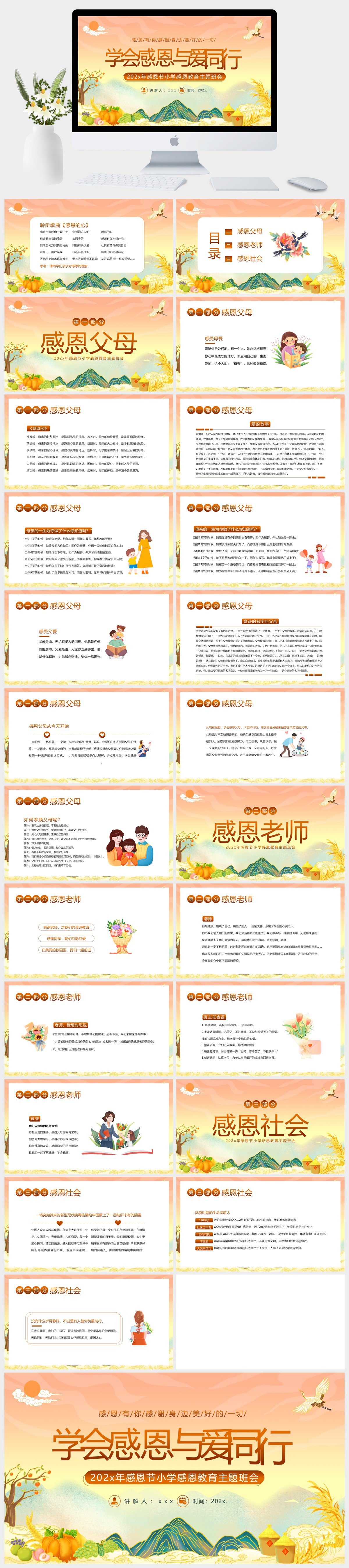 国潮风202x年感恩节小学感恩教育主题班会PPT模板