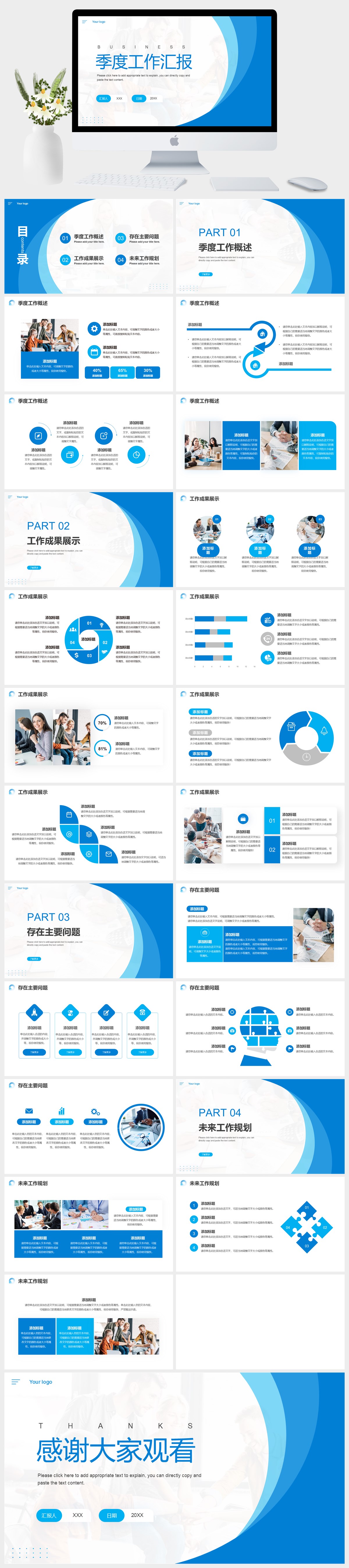 蓝色简约商务风季度总结岗位竞聘年终总结项目营销活动策划产品介绍通用PPT模板