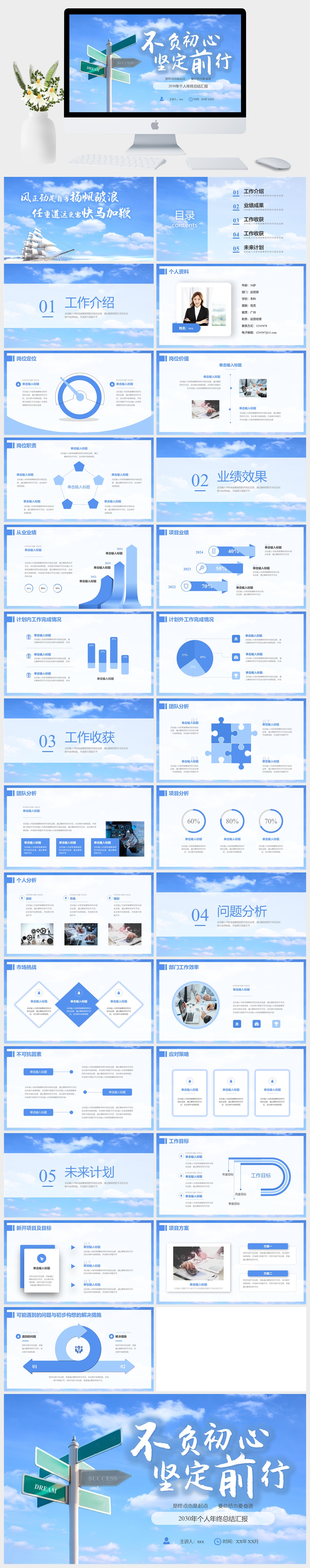 蓝色简约商务风季度总结岗位竞聘年终总结项目营销活动策划产品介绍通用PPT模板