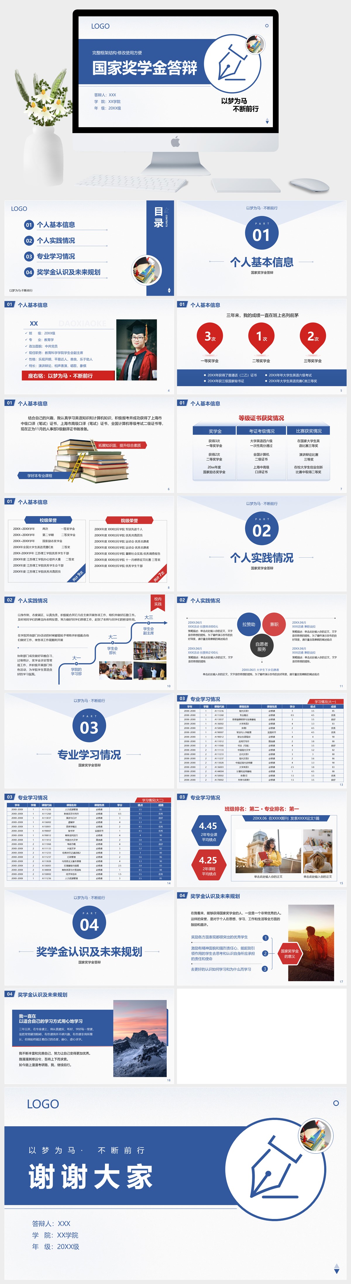 蓝色简约风国家奖学金答辩PPT模板