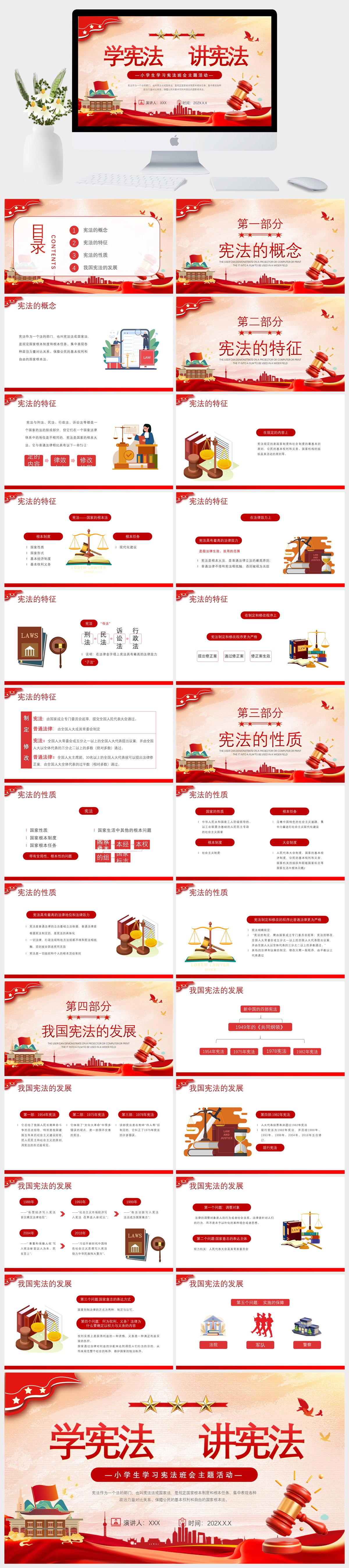红色大气小学生学习宪法班会主题活动学宪法 讲宪法PPT模板