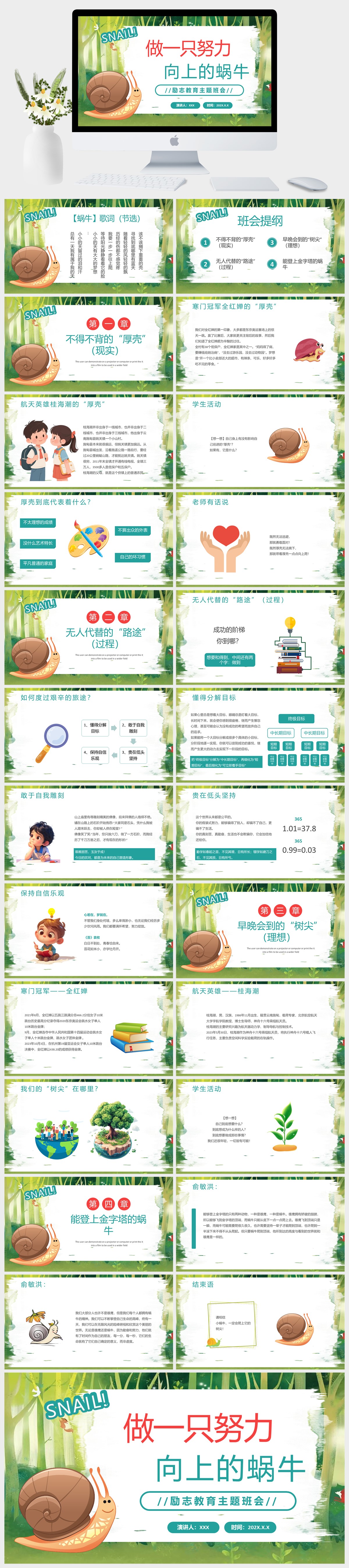 做一只努力向上的蜗牛励志主题班会PPT模板