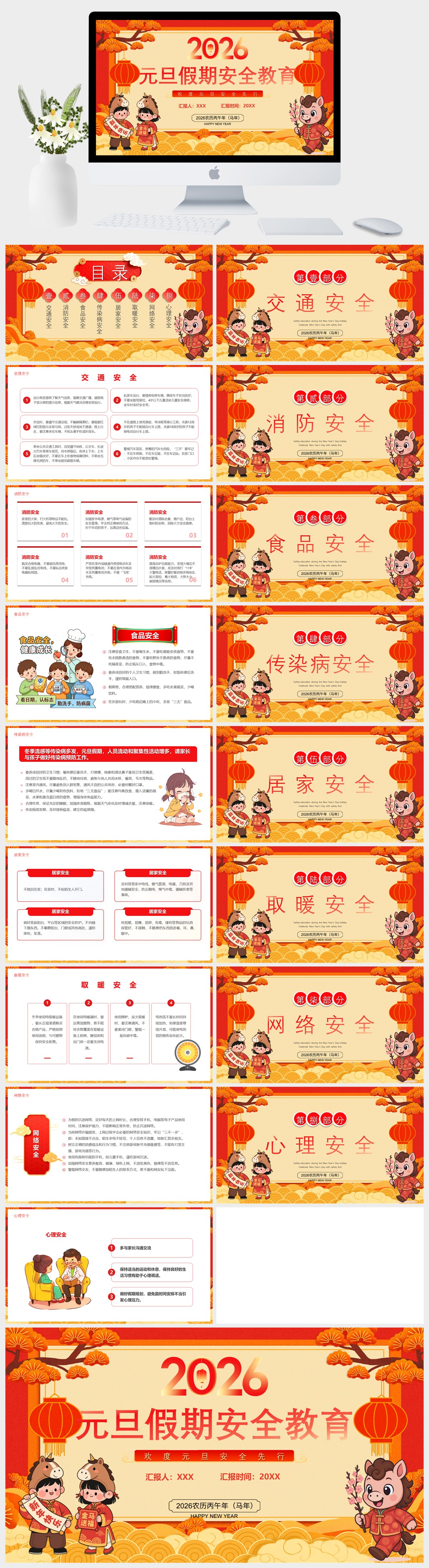 红色国潮风2026元旦假期安全教育PPT模板