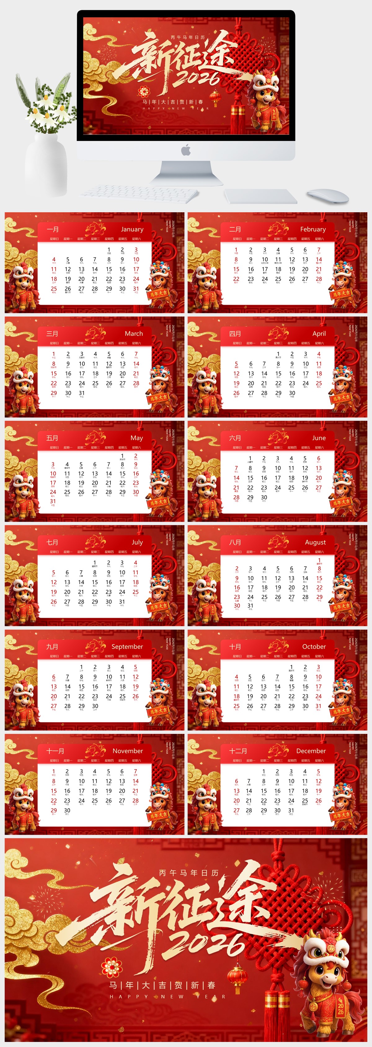 喜庆风2026马年日历PPT模板
