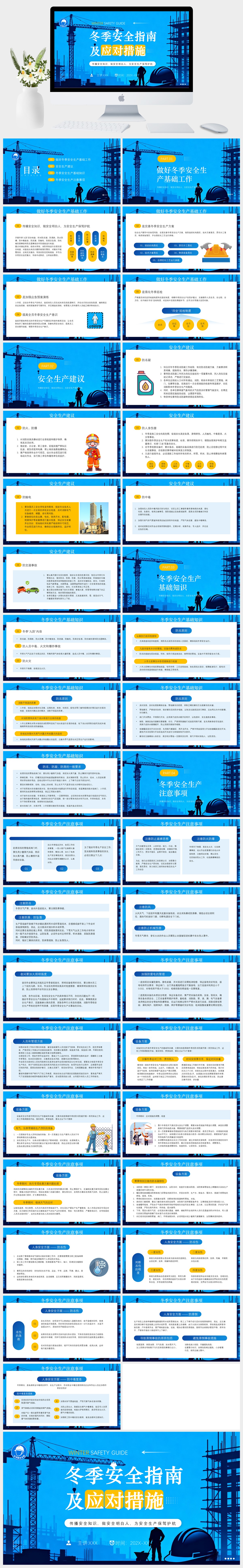 蓝色剪影冬季安全指南及应对措施PPT模板