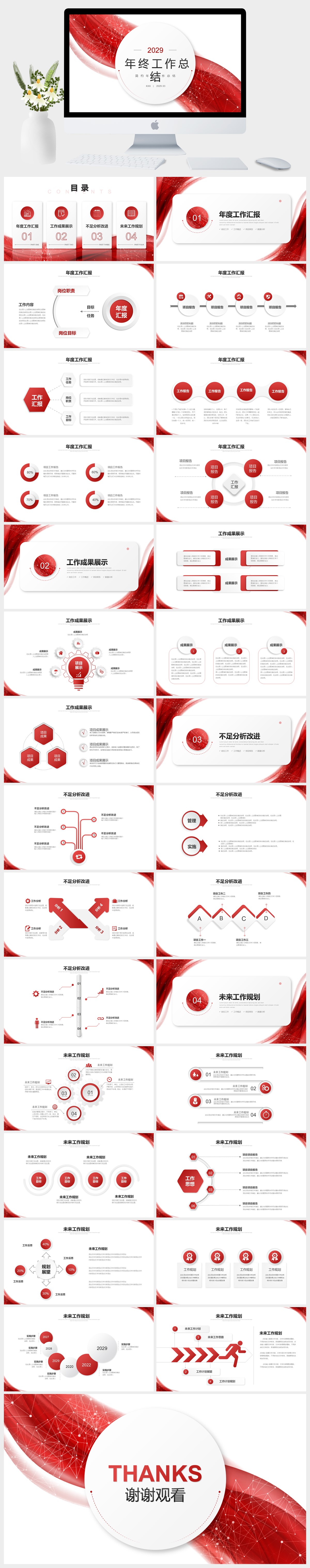 红色简约年终工作总结PPT模板