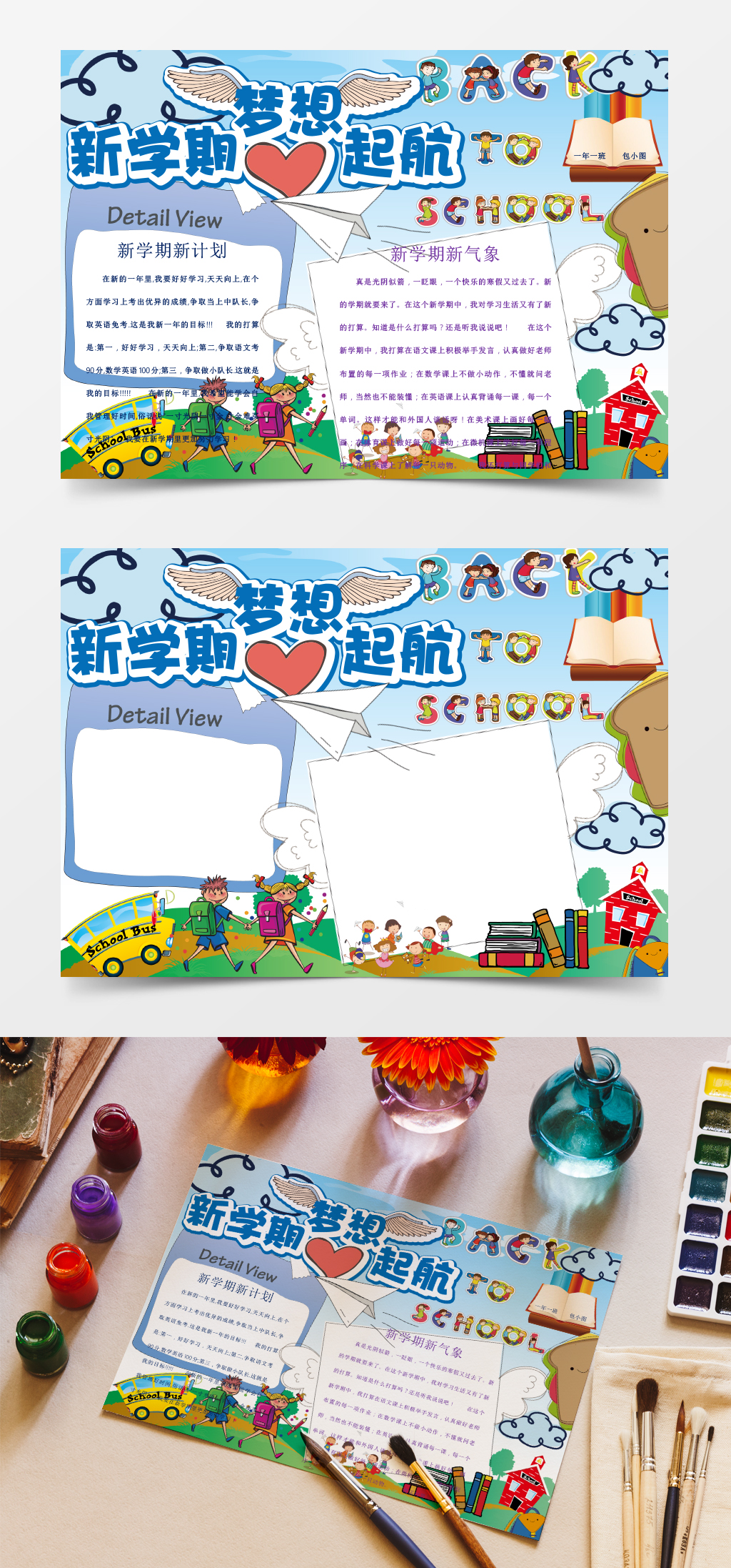 首页 Word模板 手抄报 新学期梦想起航小报手抄报Word模板