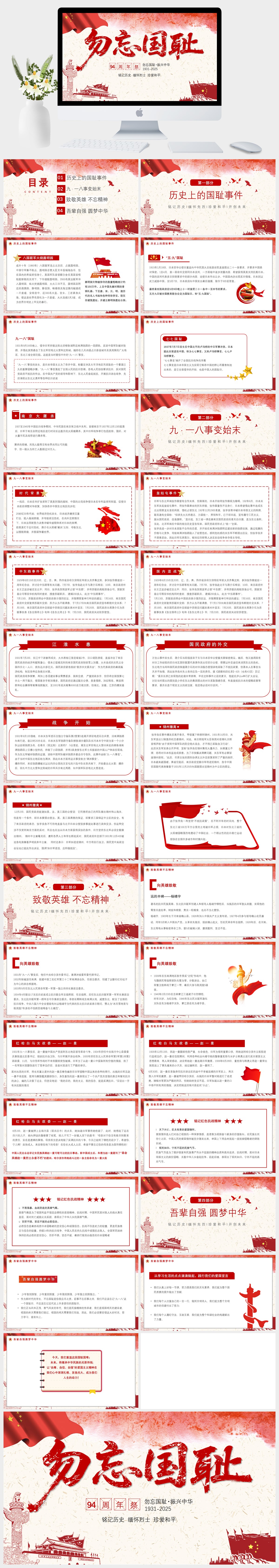 党政风铭记历史勿忘国耻九一八事变2025吾辈自强圆梦中华勿忘九一八课件PPT模板