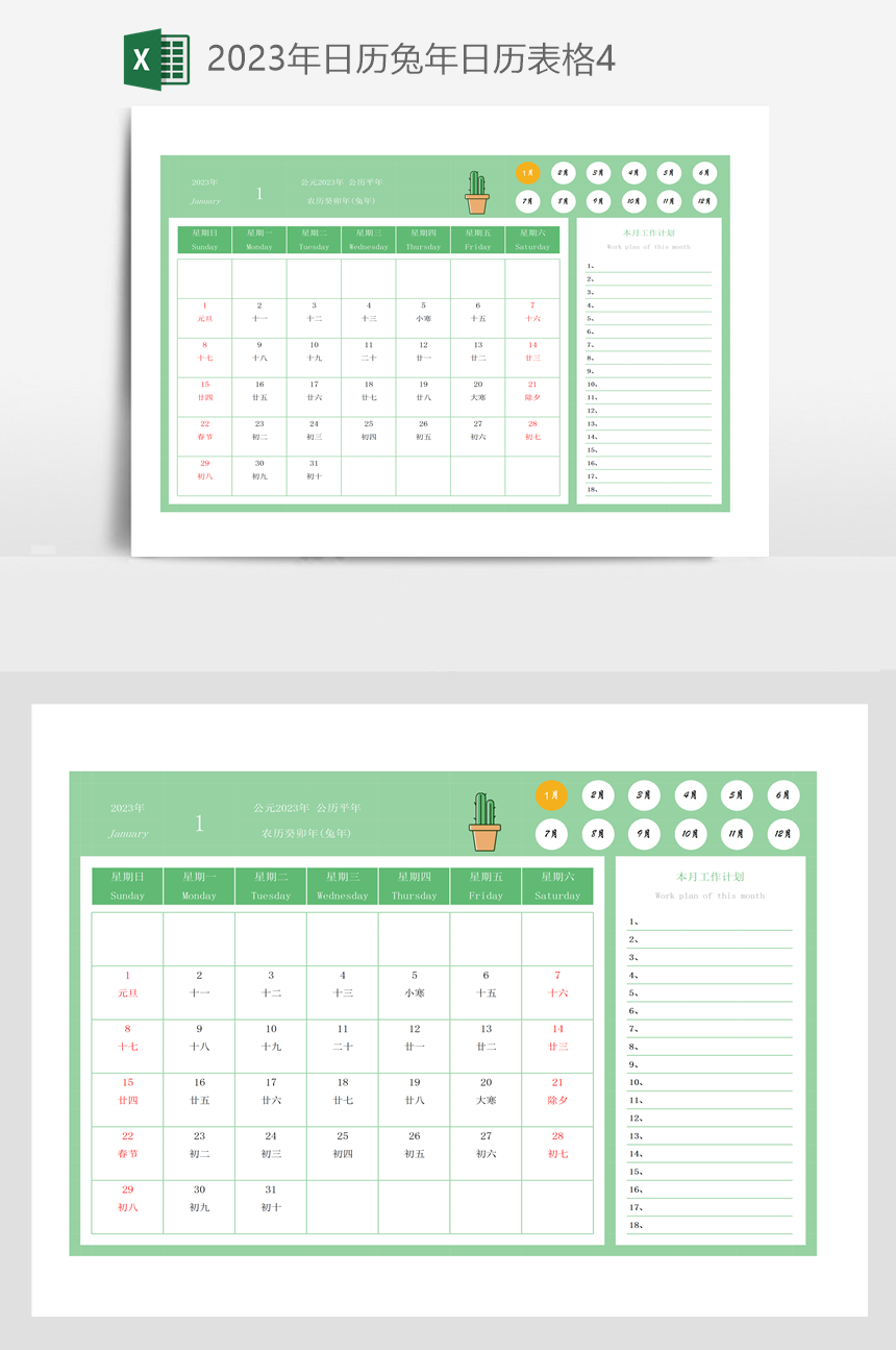 2023年日历兔年日历表格4