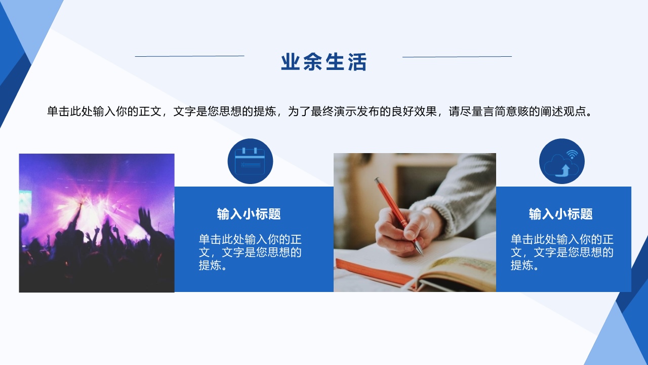 蓝色简约商务风季度总结岗位竞聘年终总结项目营销活动策划产品介绍通用PPT模板