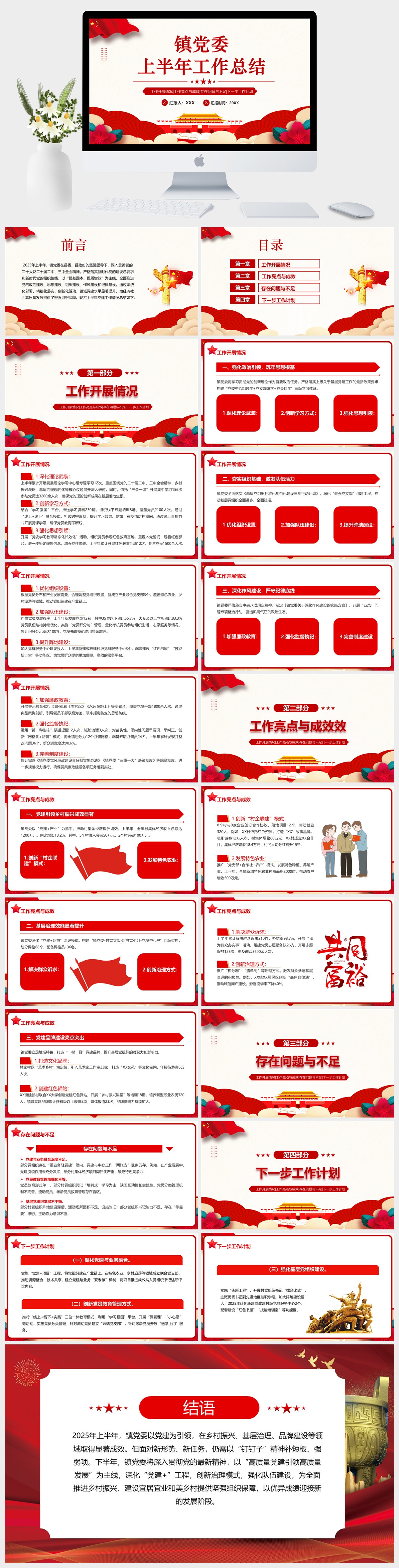 红色党政风镇党委上半年工作总结党课PPT模板