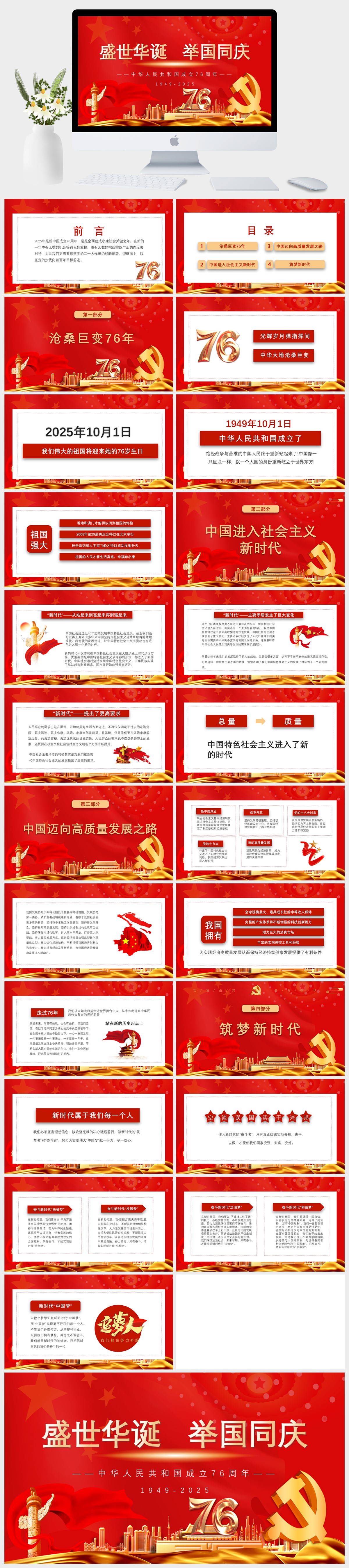 党政风2025新中国成立76周年国庆节爱国主义教育课件PPT模板