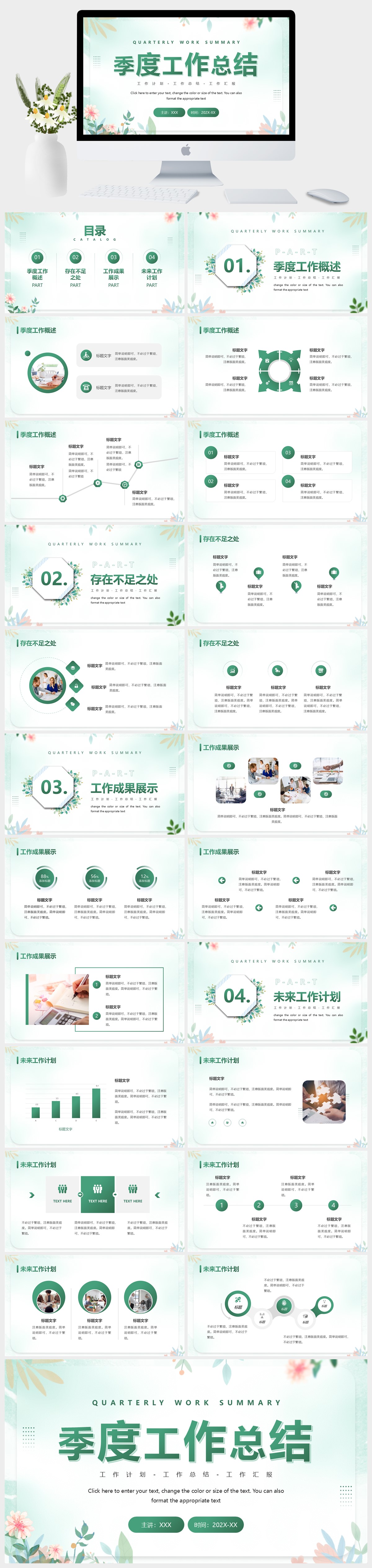 首页 PPT模板 工作总结 绿色清新季度工作总结PPT模板